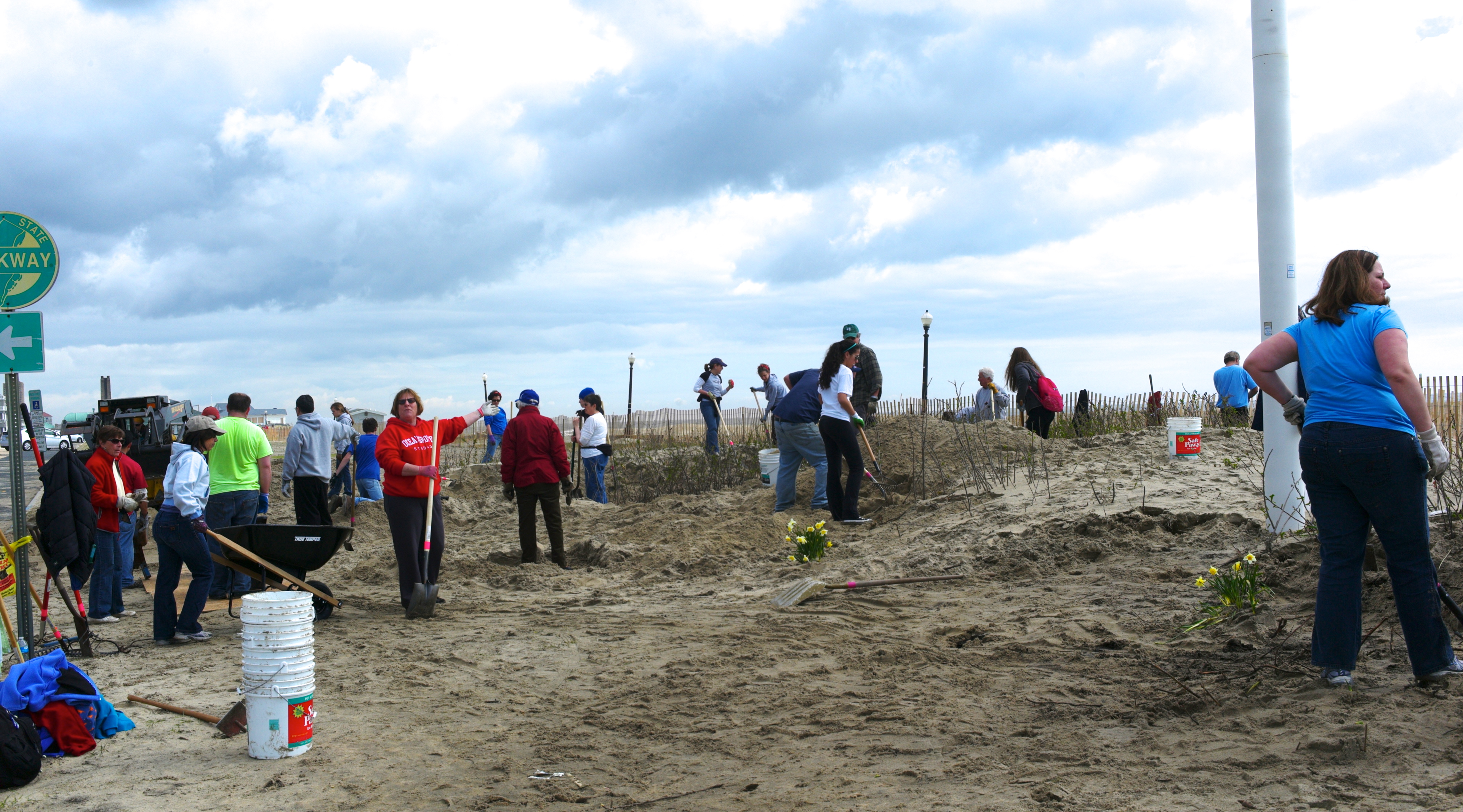 Volunteers at the beach front. They came on a big green bus; except for Connie in the red shirt