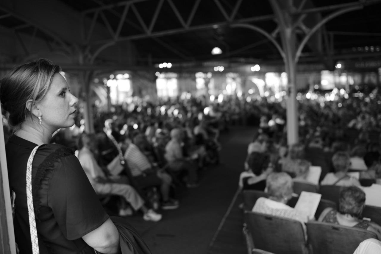 Watching from an open Auditorium door