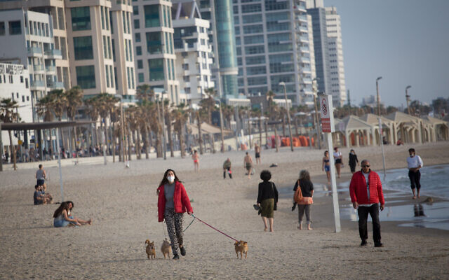 Israelis enjoy the beach promenade and beach in Tel Aviv, as restrictions having been taken on the public in order to prevent the spread of the Coronavirus, have slightly been lifted. May 01, 2020. Photo by Miriam Alster/FLASH90 *** Local Caption *** חוף הים קיץ